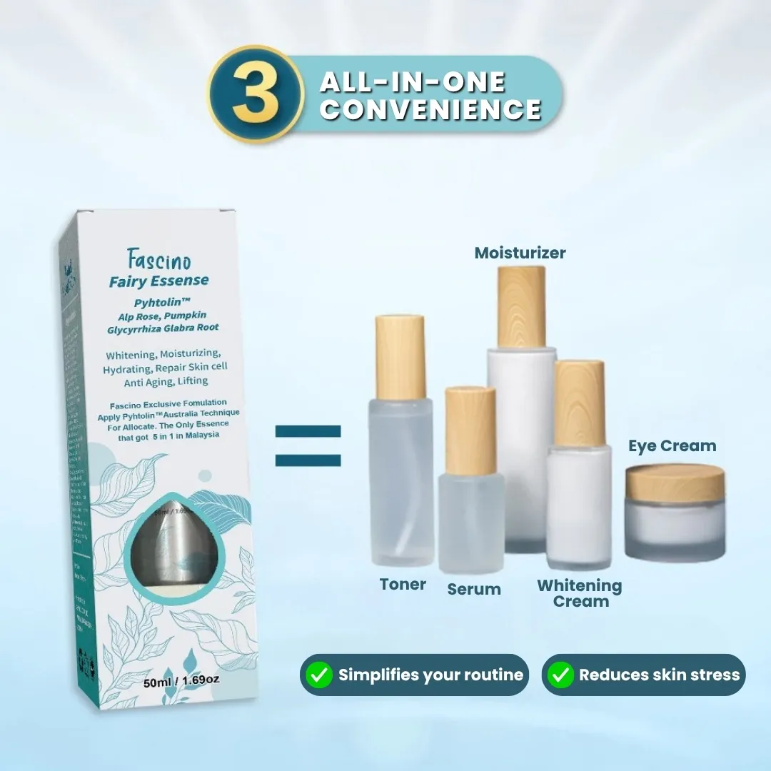 Morning Routine: Toner → Fascino Essence → Moisturizer → Sunscreen
