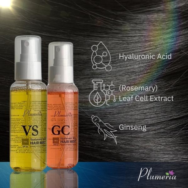 Plumeria +HA Hair Mist GC 100 ml adalah pilihan yang tepat untuk Anda yang ingin menjaga kesehatan rambut dan menghindari kerusakan akibat lingkungan. Dengan kandungan Asam Hyaluronik, produk ini dapat membantu mengunci kelembapan pada rambut Anda sehingga rambut terlihat lebih sehat dan berkilau. Selain itu, kandungan bahan alami seperti Minyak Kelapa dan Vitamin E dapat membantu menyuburkan dan memperkuat rambut Anda.